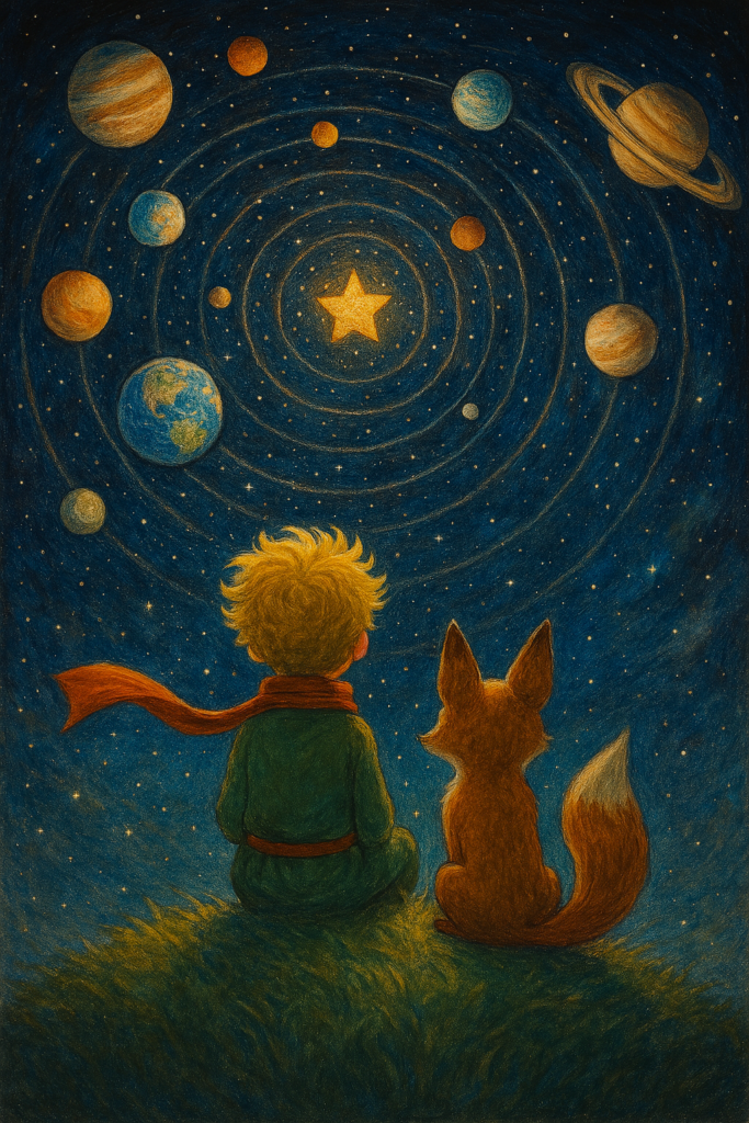 “Lo que es importante, eso no se ve. Es como la flor. Si amas a una flor que se encuentra en una estrella, es agradable ver al cielo por la noche. Todas las estrellas están florecidas. Es como el agua, la que me has dado de beber era como una música, por la polea y por la cuerda… era dulce… No te puedo enseñar dónde se encuentra mi estrella porque mi casa es muy pequeña. Será mejor así. Mi estrella será para ti una de las estrellas. Entonces te agradará mirar todas las estrellas…Todas serán tus amigas. Y te voy a hacer un regalo: las gentes tienen estrellas que no son las mismas, para unos son guías, para otros son oro o simplemente lucecitas, Pero todas esas estrellas no hablan. ¡Tú tendrás estrellas que saben reír.